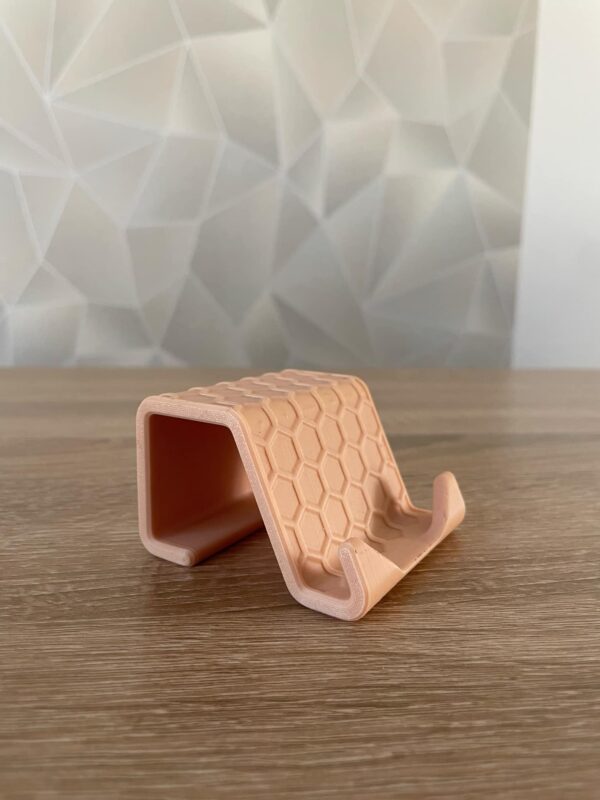Apportez une touche moderne et stylée à votre espace avec ce support téléphone design Honey. Imprimé en 3D à partir de matériaux de haute qualité, ce support unique, inspiré par des motifs en forme de nid d’abeille, allie esthétique et fonctionnalité. Il permet de maintenir votre téléphone en position verticale pour un accès facile tout en ajoutant un design original à votre bureau ou table de nuit. Disponible en couleur au choix, personnalisez-le pour qu’il s’intègre parfaitement à votre style.
